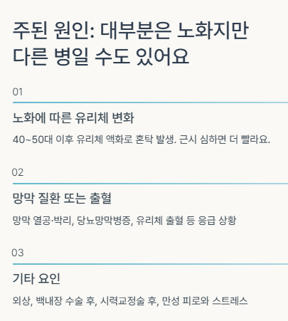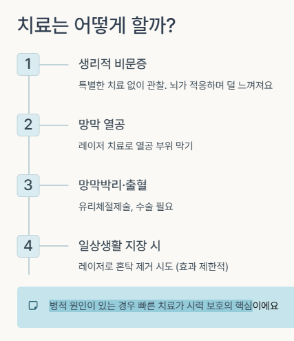 병적인 원인이 있는 경우는 빠른 치료가 시력을 보호하는 핵심입니다.