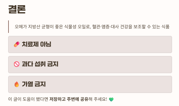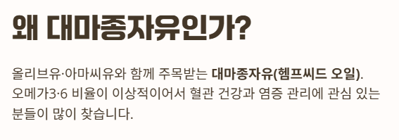 “오메가 지방산 균형이 좋은 식물성 오일로, 혈관·염증·대사 건강을 보조할 수 있는 식품”