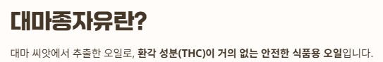 중요한 점은 우리가 흔히 오해하는 것과 달리 환각 성분(THC)이 거의 없는 안전한 식품용 오일이라는 것입니다.