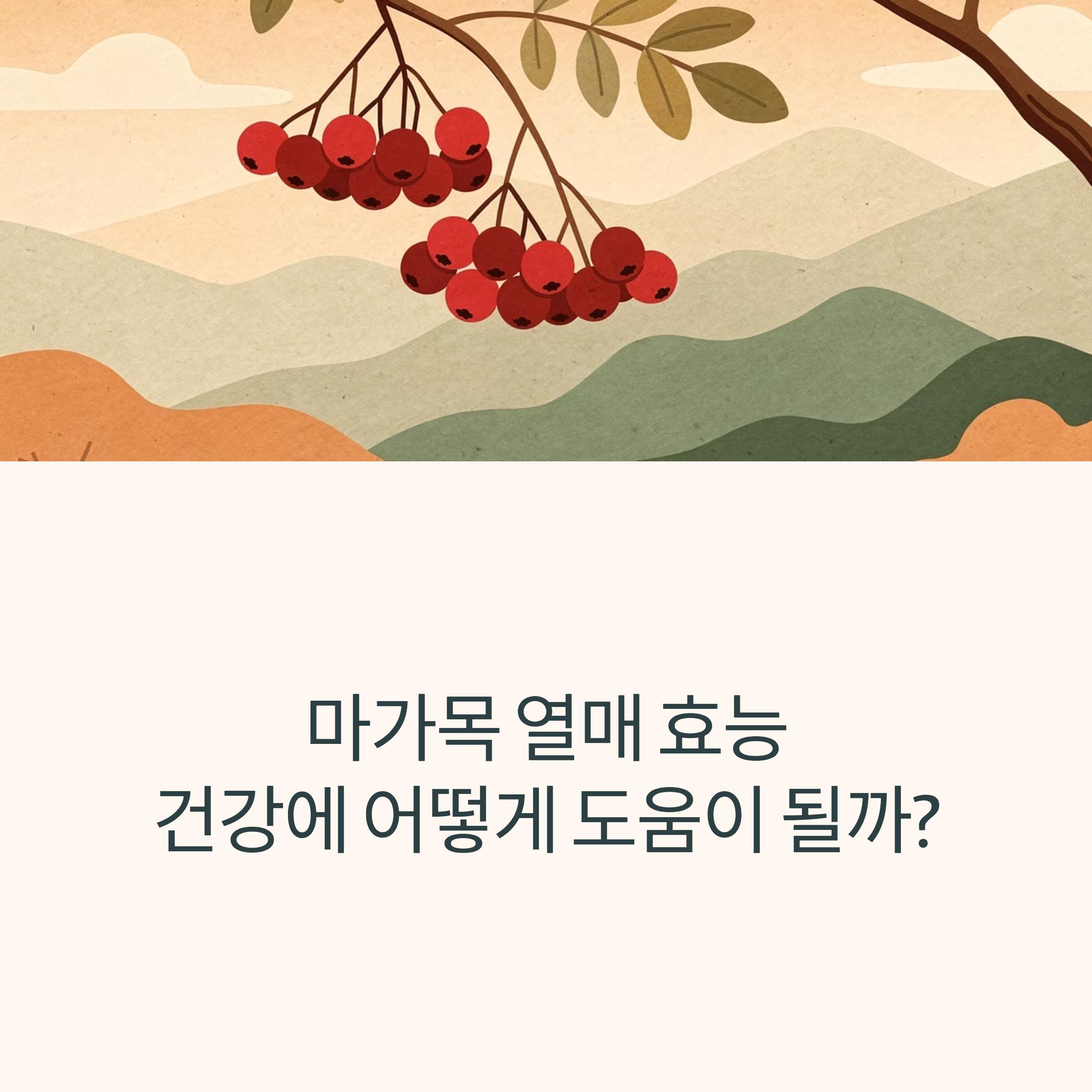 마가목 열매는 우리나라 산과 들에서 자라는 전통 식물로, 오랜 세월 민간에서 약재나 차 재료로 활용되어 왔습니다. 붉은 열매에는 항산화 작용을 하는 비타민 C, 카로티노이드, 플라보노이드 성분이 풍부해 면역력부터 뇌 건강까지 다양한 부분에서 긍정적인 영향을 줄 수 있다고 알려져 있습니다. 하지만 체질에 따라 섭취에 주의가 필요하며, 적절한 방법과 용량을 지켜야 더 안전하게 활용할 수 있습니다.