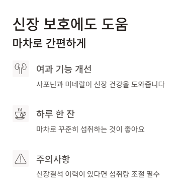 신장 건강에 관심 있는 분들이라면 하루 한 잔의 마차, 기억해 두세요.