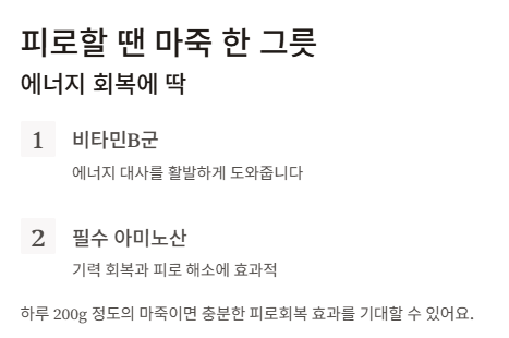 하루 200g 정도의 마죽이면 충분한 피로회복 효과를 기대할 수 있어요.