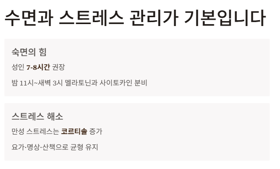 수면과 스트레스 관리가 기본입니다