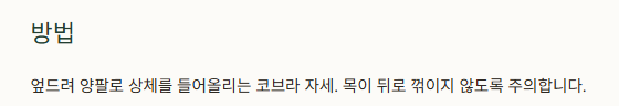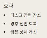 | 멕켄지 운동 | 경추·흉추 주위 | 디스크 압력 감소 | 목 뒤 과신전 금지 |
