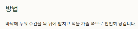 바닥에 누운 상태에서 수건을 목 뒤에 받치고