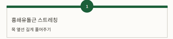 | 흉쇄유돌근 스트레칭 | 흉쇄유돌근 | 목 옆 근육 이완 | 천천히, 반동 금지 |