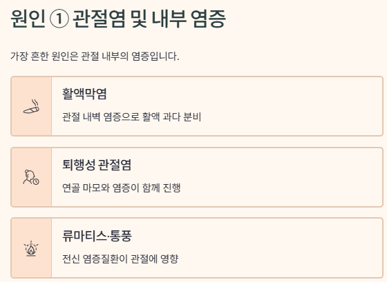 가장 흔한 원인은 관절 내부의 염증입니다.