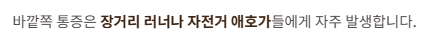 바깥쪽 통증은 장거리 러너나 자전거 애호가들에게서 자주 발생합니다.