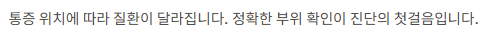| 부위 | 대표 질환 | 의심 증상 |