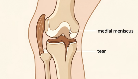 | 내측 반월상연골 파열 | 무릎 안쪽 찌릿, 걸을 때 ‘딸깍’ | 걸림·잠김(locking), 회전 동작 불편 |