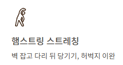 | 햄스트링 스트레칭 | 벽 잡고 다리 뒤 당기기, 허벅지 이완 |