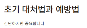 초기 대처법과 예방법은 간단하지만 중요합니다