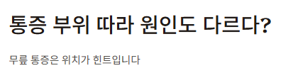 | 전신질환 | 류마티스, 통풍 | 아침 통증, 전신 통증 동반 | 관절 외 증상 포함 |