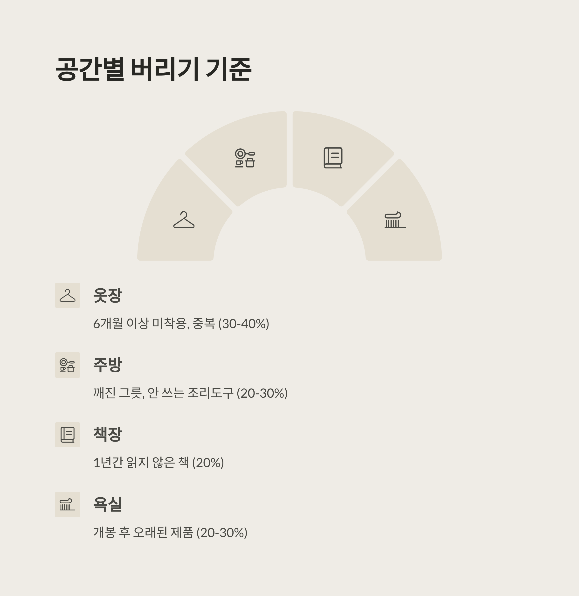 | 주방용품 | 20~30% | 1년간 미사용 도구 |