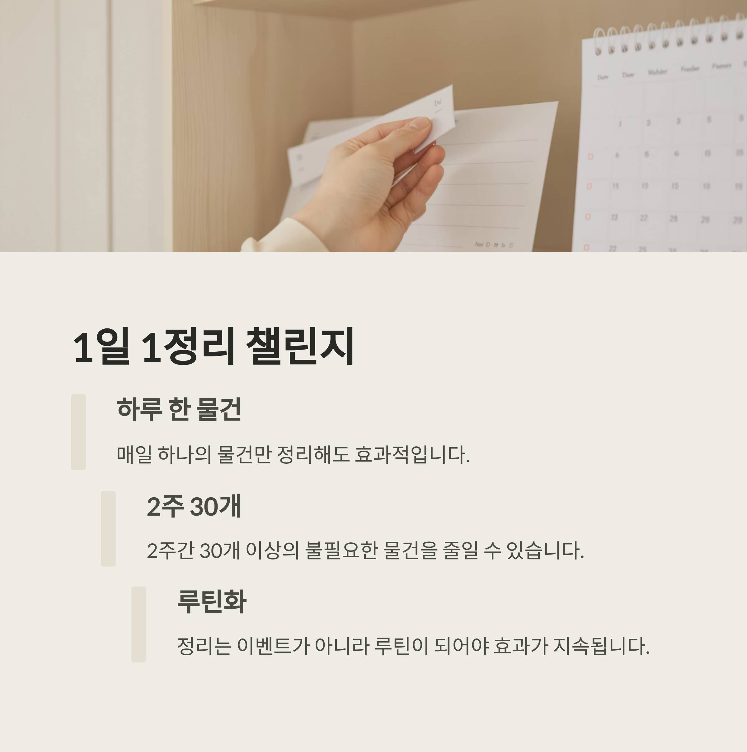 정리는 이벤트가 아니라 루틴이 되어야 효과가 지속됩니다.
