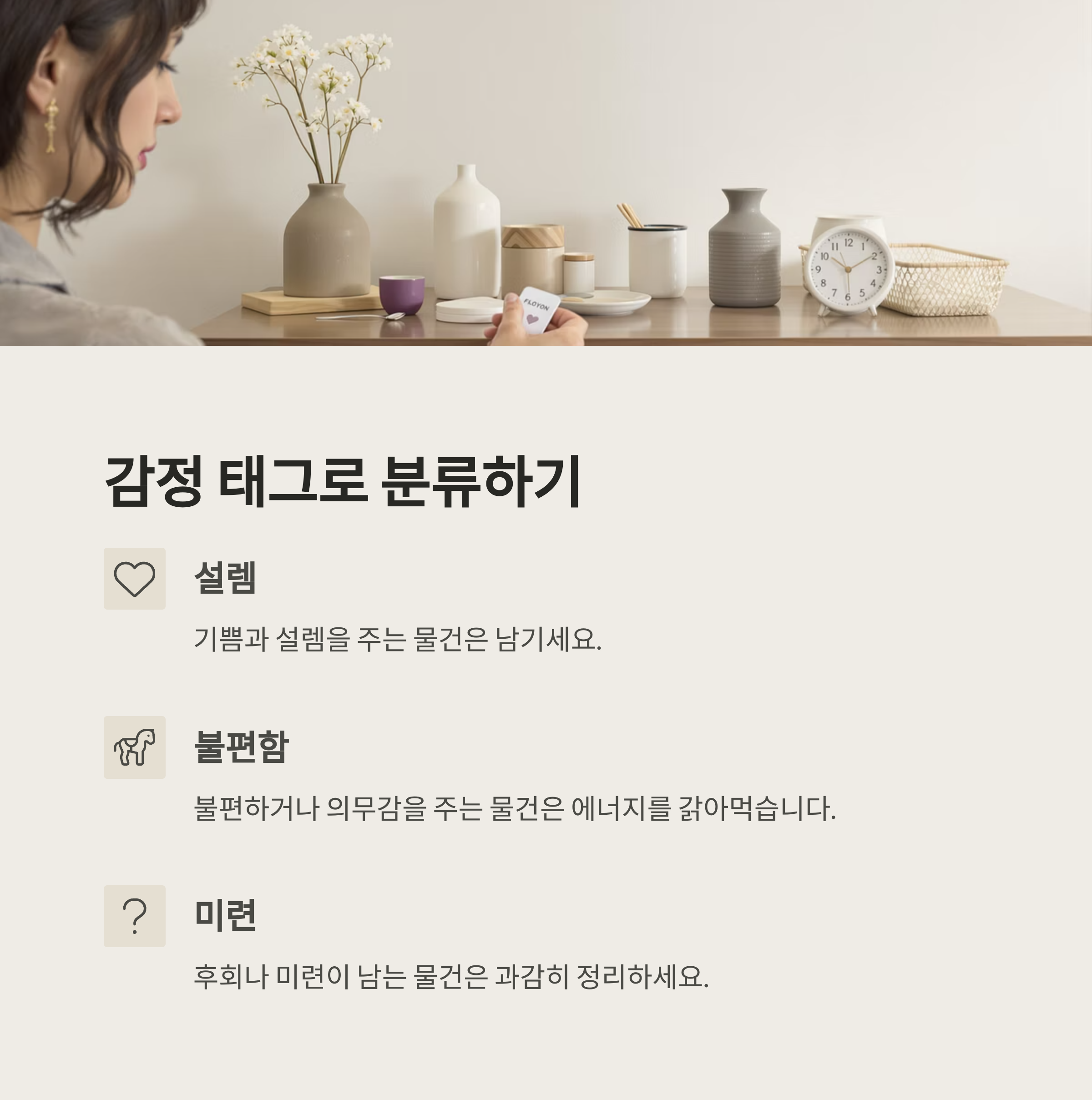 - 감정 태그를 붙여 설렘 없는 물건 비움