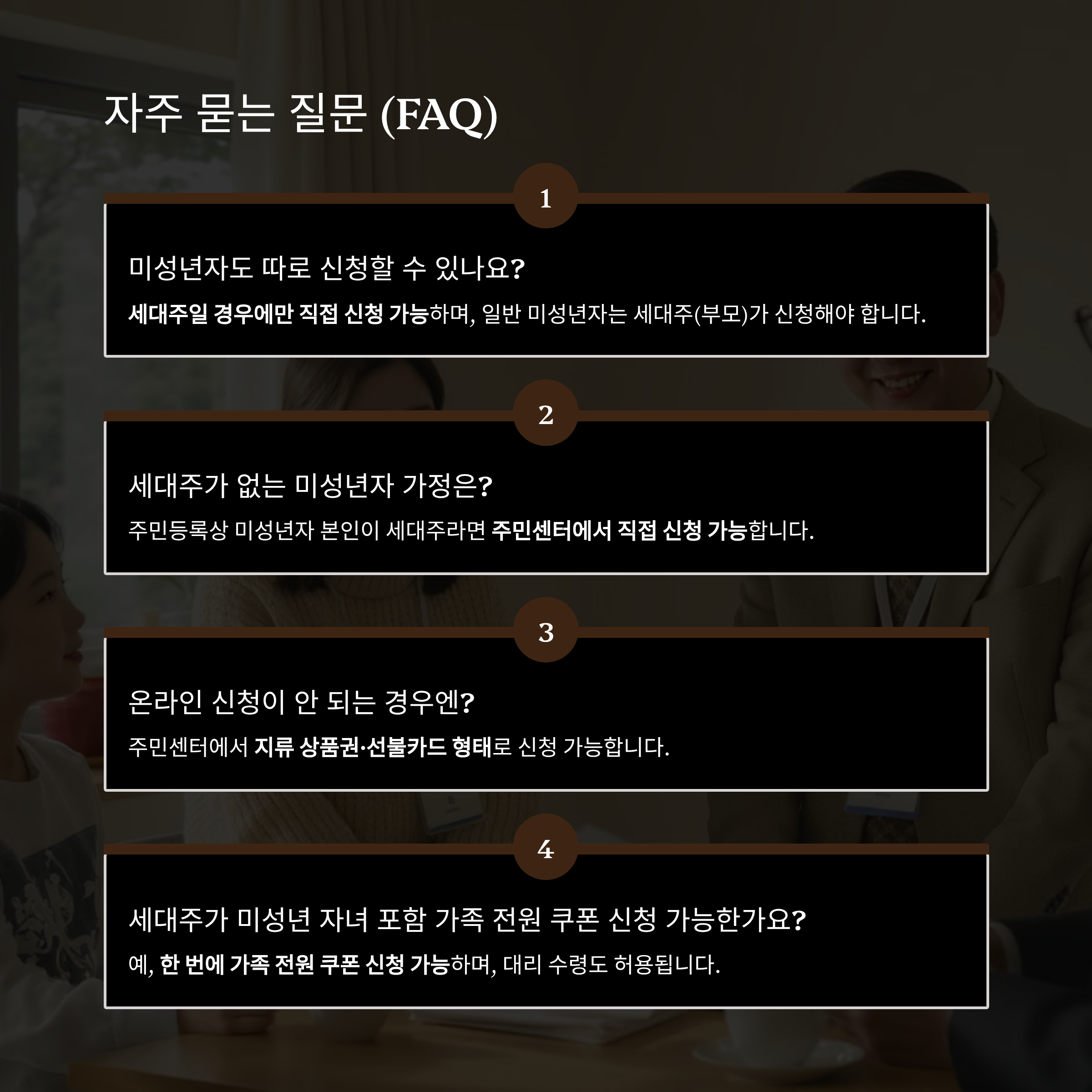 Q. 세대주가 미성년 자녀 포함 가족 전원 쿠폰 신청 가능한가요?