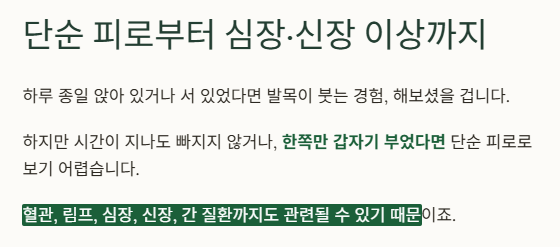 오래 서 있거나 앉아서 생기는 일시적 부종