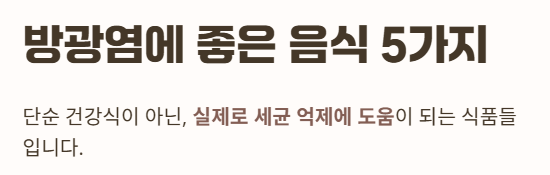 이 음식들은 단순 건강식이 아니라 실제로 “세균 억제에 도움” 되는 식품들입니다.
