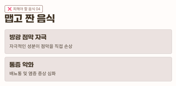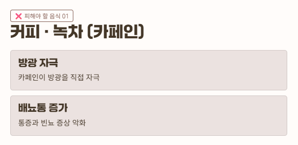 - 카페인, 술, 자극 음식 금지