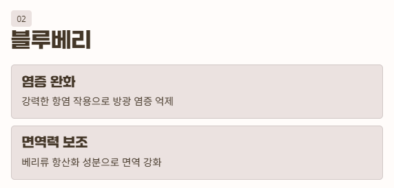 크랜베리와 같은 베리류지만 항염 작용이 강점입니다