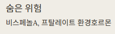 | 7 | 비스페놀A(BPA) | 여성호르몬↑, 난소 기능 저하 20% 보고됨 |