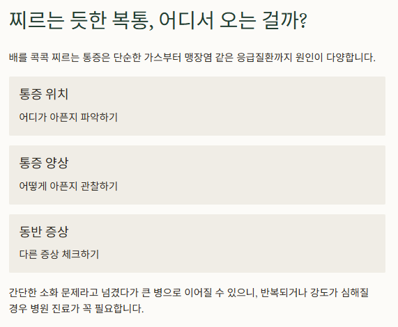 배가 찌르듯 아프다고 무조건 병은 아니지만, 절대 가볍게 넘겨선 안 됩니다. 통증의 위치와 지속 시간, 동반 증상을 잘 관찰하고 필요시 신속하게 진료를 받는 것이 안전합니다. 스스로 진단하고 치료를 미루는 것만큼 위험한 건 없어요. 언제든 이상하면 병원을 찾으세요. 건강은 기다려주지 않습니다.
