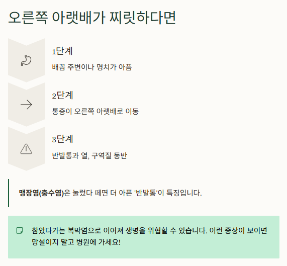 오른쪽 아랫배가 찌릿하다면, 맹장염일 수 있어요