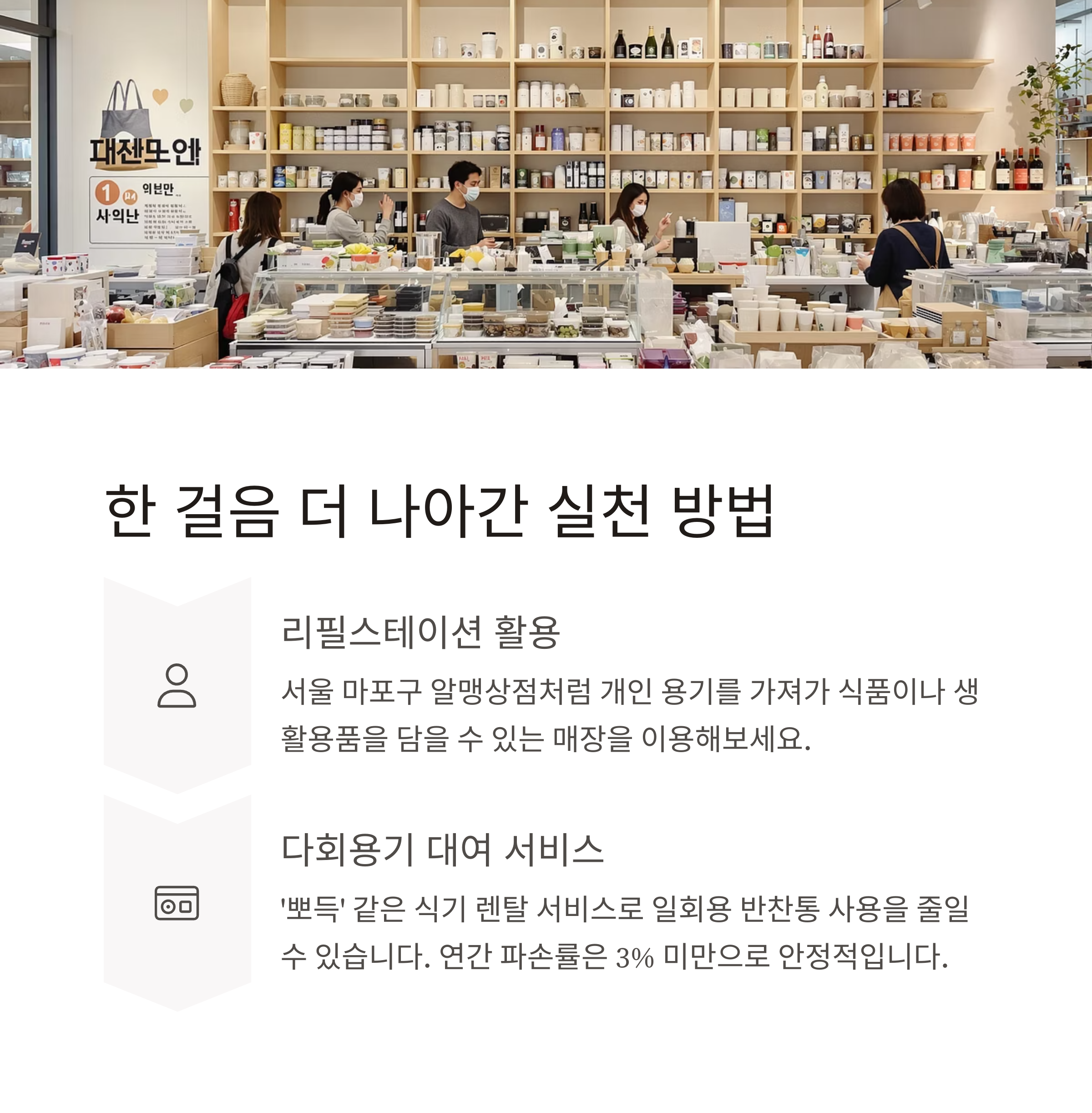 이는 포장 폐기물을 줄일 수 있는 효과적인 방법입니다. - 다회용기 대여 서비스