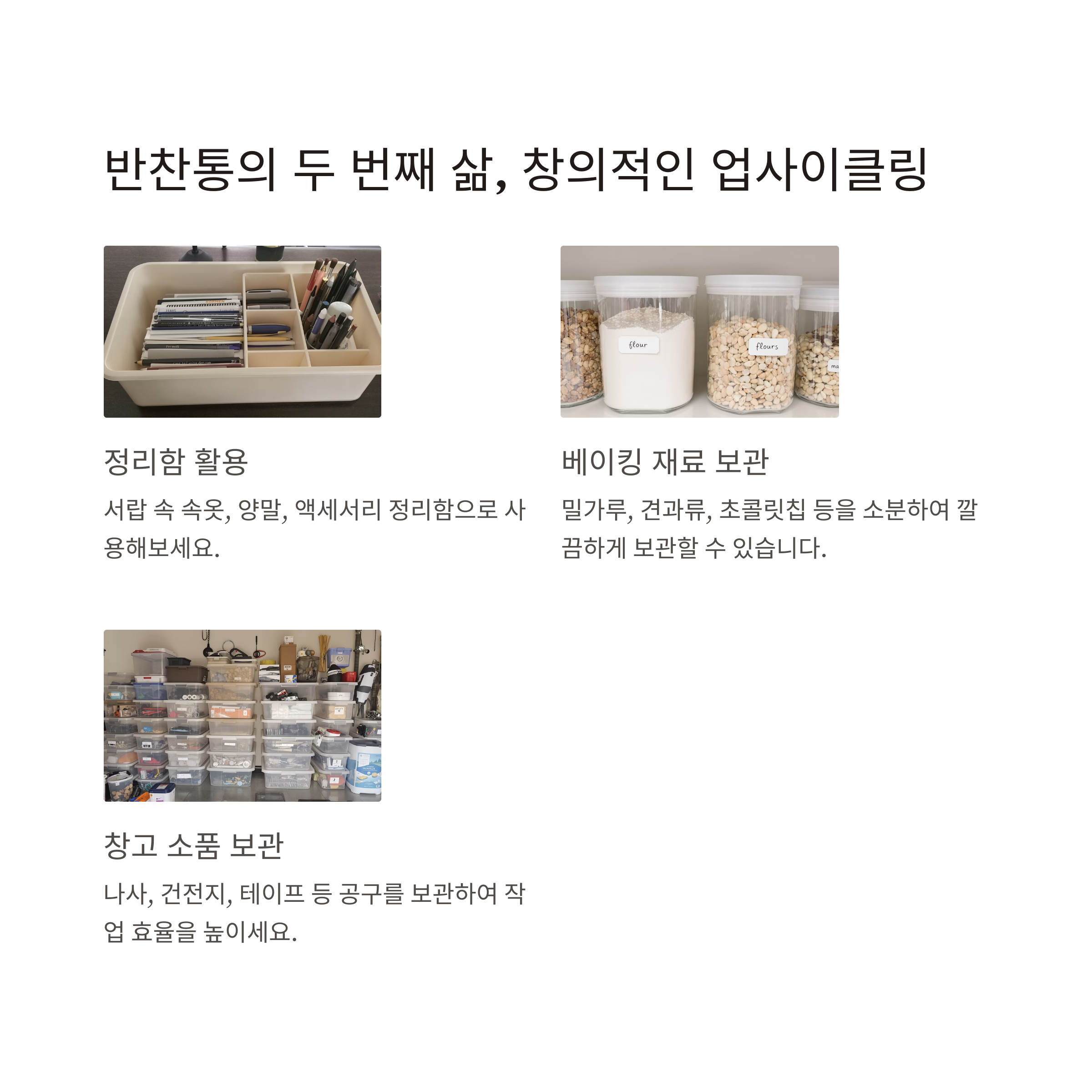 이처럼 반찬통은 형태와 크기를 살려 다양한 분야에 활용될 수 있으며,