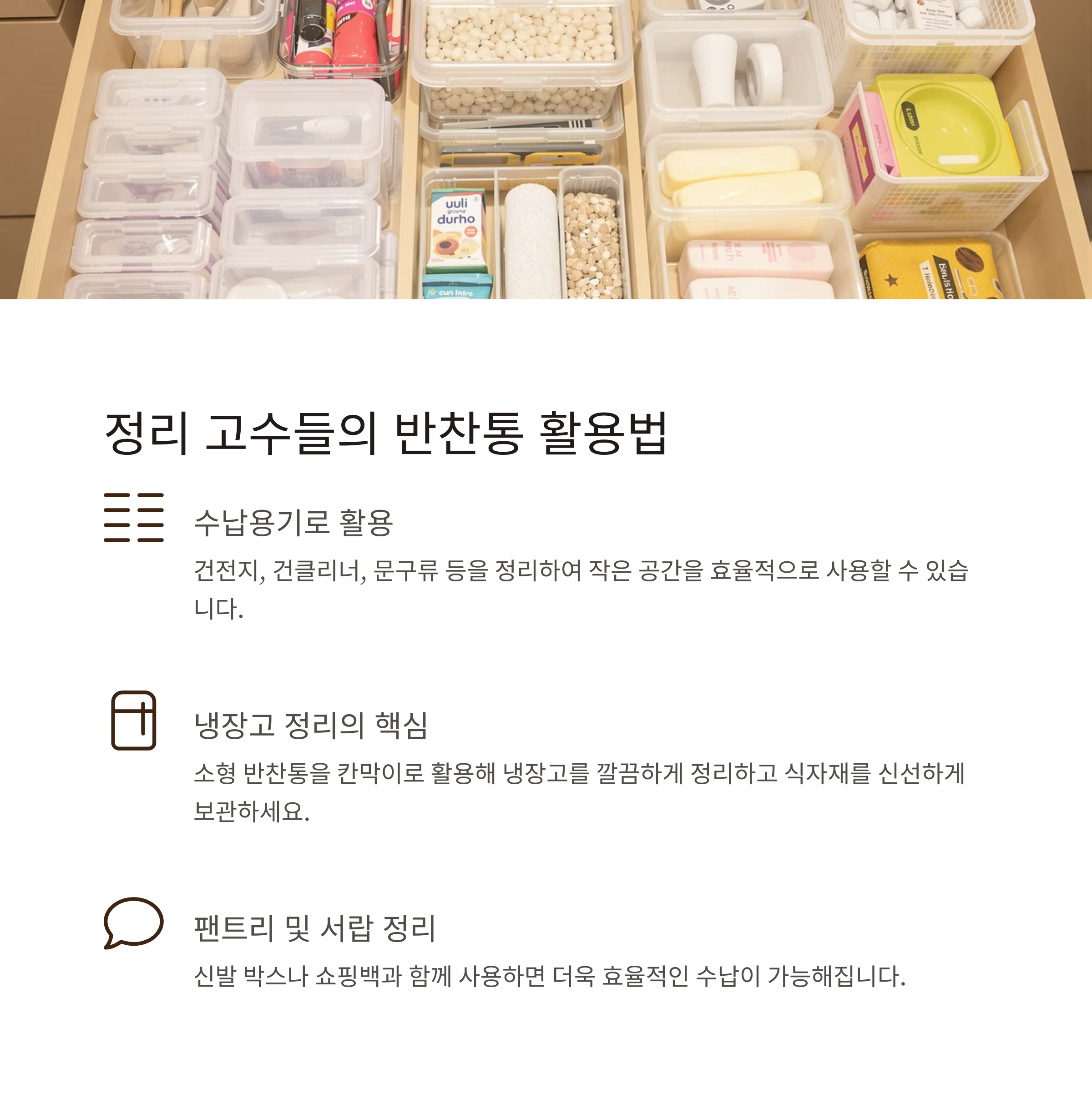 정리 고수들은 반찬통을 단순한 용기로 보지 않습니다.