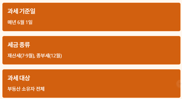 | 세금 종류 | 재산세(7·9월), 종부세(12월) |