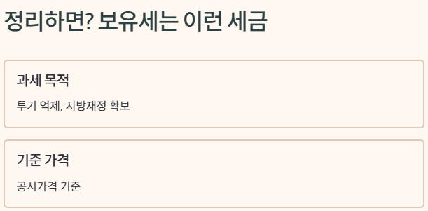 | 과세 목적 | 부동산 투기 억제, 지방재정 확보 |