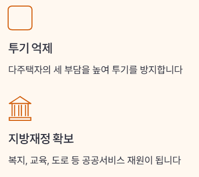 | 과세 목적 | 부동산 투기 억제, 지방재정 확보 |