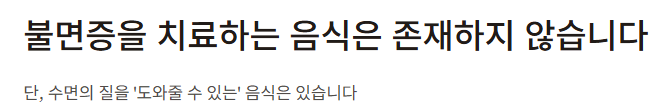 "불면증 자체를 치료하는 음식은 없다."
