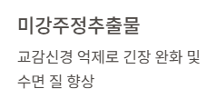 | 미강주정추출물 | 교감신경 억제 | 긴장 완화 및 수면 질 향상 |