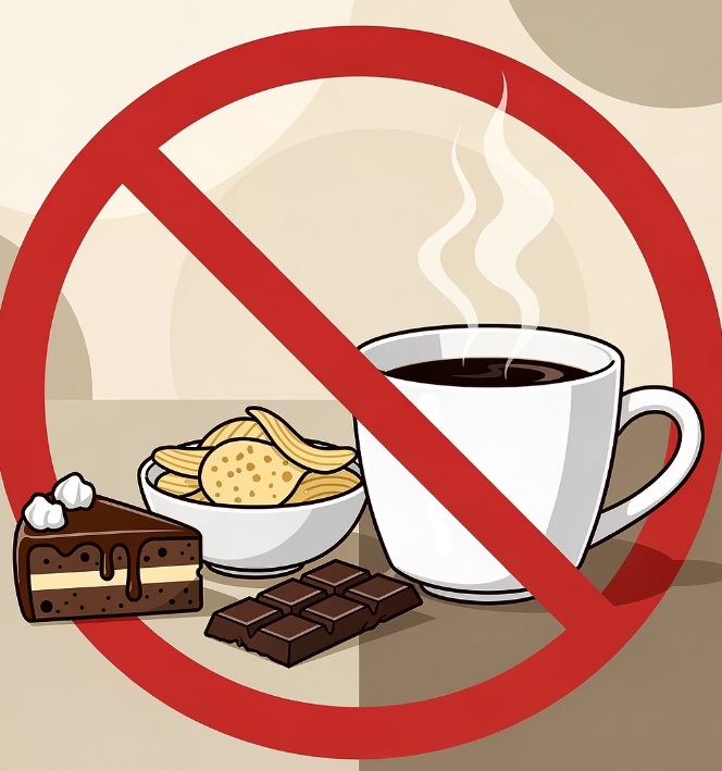 밤늦게 먹는 고당도 간식이나 카페인, 알코올은