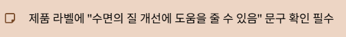 제품 라벨에 “수면의 질 개선에 도움을 줄 수 있음”이라는 문구가 있어야 합니다.