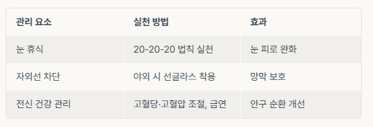 - 선글라스로 자외선 차단, 금연, 혈압·혈당 관리