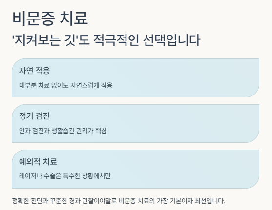 정기적인 안과 검진과 생활습관 관리가 치료의 핵심이며,