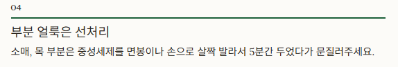 소매, 목 부분은 중성세제를 면봉이나 손으로 살짝 발라서 5분간 두었다가 문질러주세요.