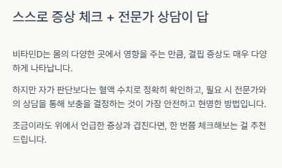 비타민D는 몸의 다양한 곳에서 영향을 주는 만큼, 결핍 증상도 매우 다양하게 나타납니다. 하지만 자가 판단보다는 혈액 수치로 정확히 확인하고, 필요 시 전문가와의 상담을 통해 보충을 결정하는 것이 가장 안전하고 현명한 방법입니다.