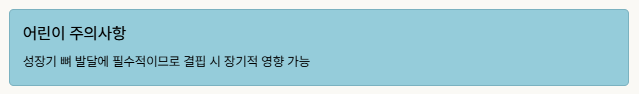 | 어린이 | 다리 휘어짐, 키 성장 저하 | 구루병 |