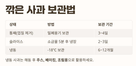 냉동 사과는 해동 후 주스, 베이킹, 조림용으로 활용하면 좋습니다.