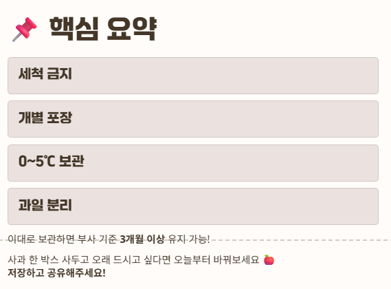 이 방법대로 보관하면 부사 기준 3개월 이상 충분히 유지할 수 있습니다.
