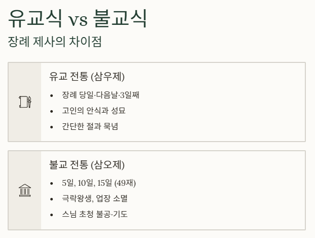 | 구분 | 유교 전통 (삼우제) | 불교 전통 (삼오제) |