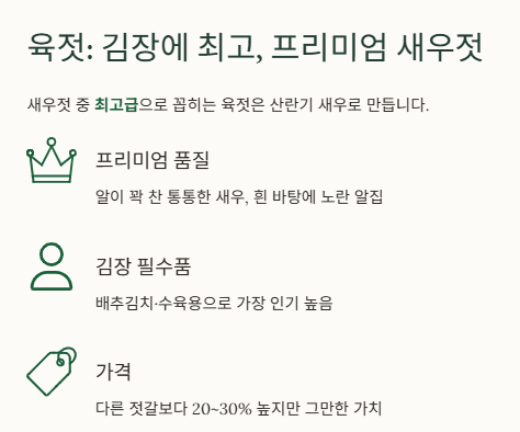 새우젓 3대장을 비교한 아래 표로 먼저 전체적인 차이를 정리해 보세요.