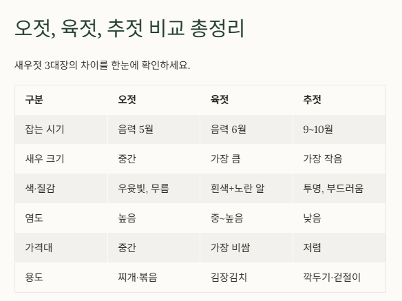 오젓, 육젓, 추젓 비교 총정리
