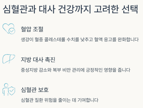 | 대사 지원 | 혈압·지질 감소, 지방 대사 촉진 |