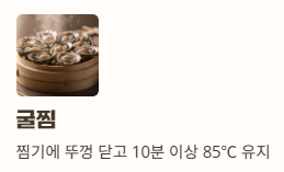 | 취약군 주의 | 노약자·임산부·유아는 생굴 금지, 반드시 익혀 섭취 |